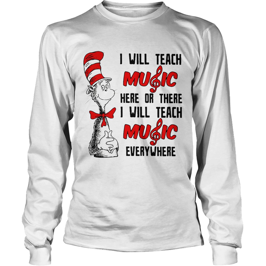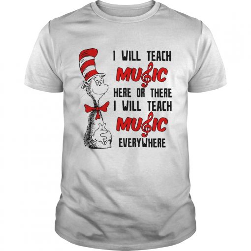 Best Dr Seuss I will teach music here or there I will teach music everywhere shirt