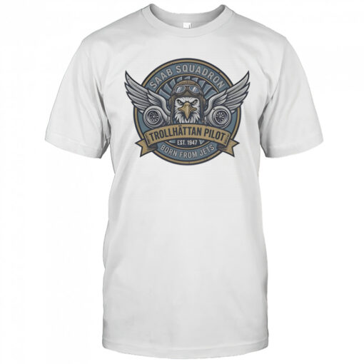 Unleash your inner aviator and make a statement with the Eagle Saab Squadron born from Jets est 1947 shirt. Join the squadron of trendsetters and history enthusiasts who appreciate the blend of classic aesthetics and modern flair. Whether you’re a fan of aviation history or simply crave a standout addition to your wardrobe, this shirt is a must-have. Don’t miss the opportunity to showcase your individuality and pay homage to the iconic Saab aircraft. Embrace the legacy, wear it with pride, and let your style take flight. Upgrade your look today and experience the thrill of wearing a piece of history!