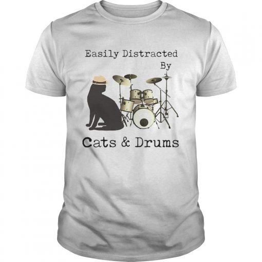 Easily Distracted By Cats and Drums shirt, hoodie, sweater, longsleeve and ladies t-shirt