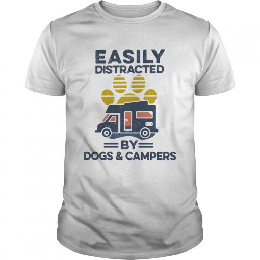 Easily Distracted By Dogs And Campers Footprint Vintage Retro shirt, hoodie, sweater, longsleeve and ladies t-shirt