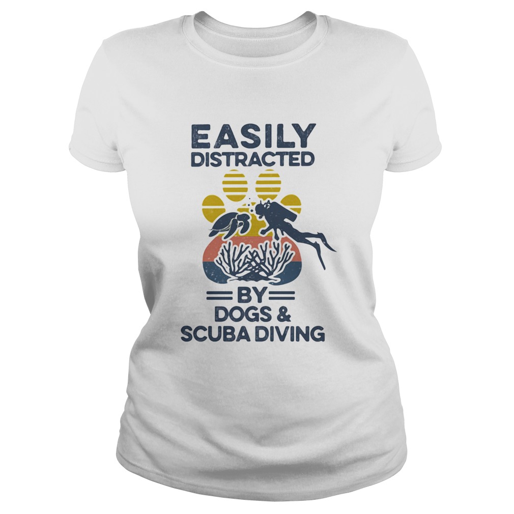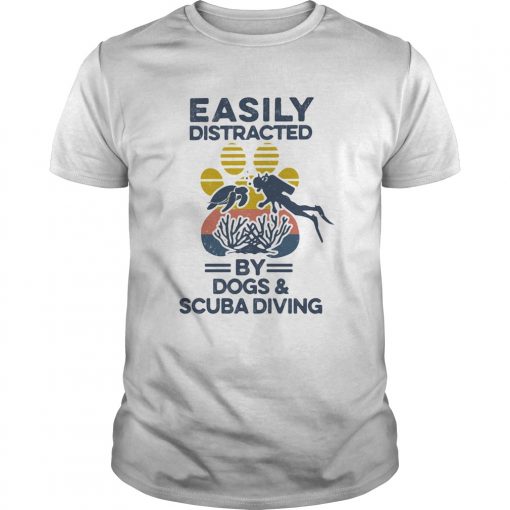 They were abandoned Easily Distracted By Dogs And Scuba Diving Footprint Vintage Retro shirt .by their mother, and hate women. They don’t understand it, or know it, but their underlying mistrust and resentment towards women has a profound of impact on their daily lives. I’m so grateful that this gorgeous boy is with his father, safe, and learning that his mother’s choices do not speak for the entire female population.Some men are just donors. Some women are just incubators of . But all kids deserve better. Glad this man is doing his part to set the bar for what a good parent is.ude stepped up and is a father I’d wish to have, just accept some women are as selfish as men are portrayed to be.