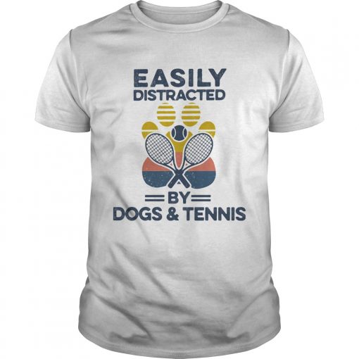 Easily Distracted By Dogs And Tennis Footprint Vintage Retro shirt, hoodie, sweater, longsleeve and ladies t-shirt