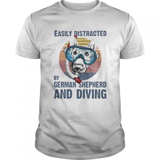Easily distracted by german shepherd and scuba diving vintage retro shirt, hoodie, sweater, longsleeve and ladies t-shirt