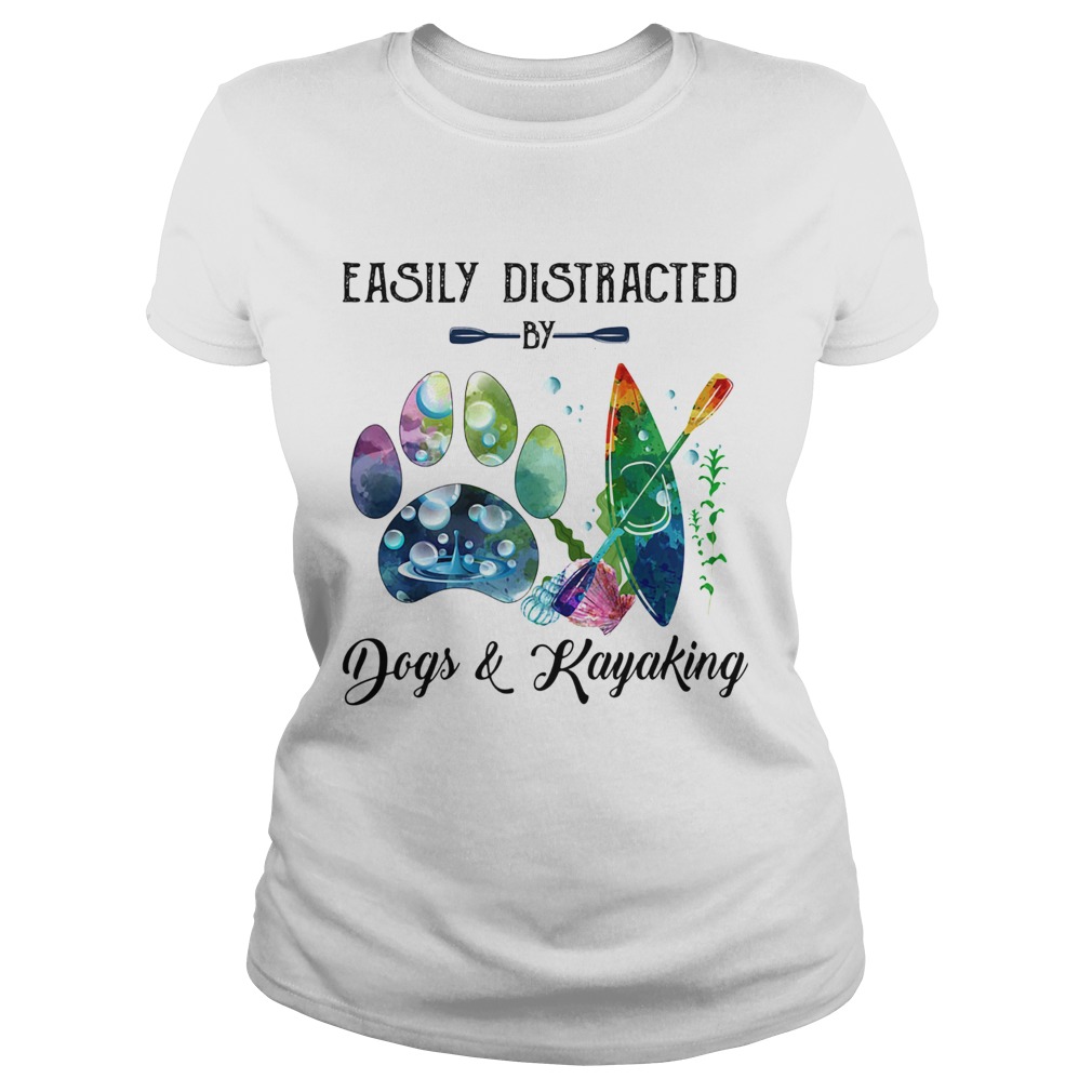 Easily distracted by paw dogs and kayaking shirt, hoodie, sweater, longsleeve and ladies t-shirt