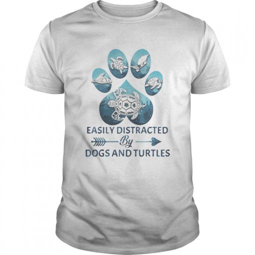 Easily distracted by paw dogs and turtles shirt, hoodie, sweater, longsleeve and ladies t-shirt