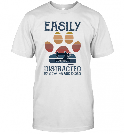 Easily Distracted By Sewing And Paw Dogs Vintage T-Shirt, hoodie, sweater, longsleeve and ladies t-shirt