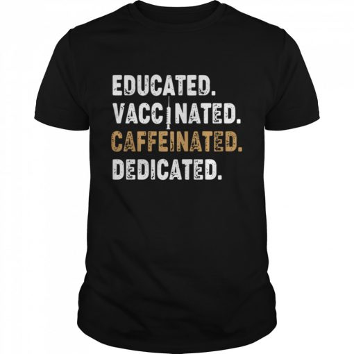 Educated Vaccinated Caffeinated Dedicated shirt, hoodie, sweater, longsleeve and ladies t-shirt
