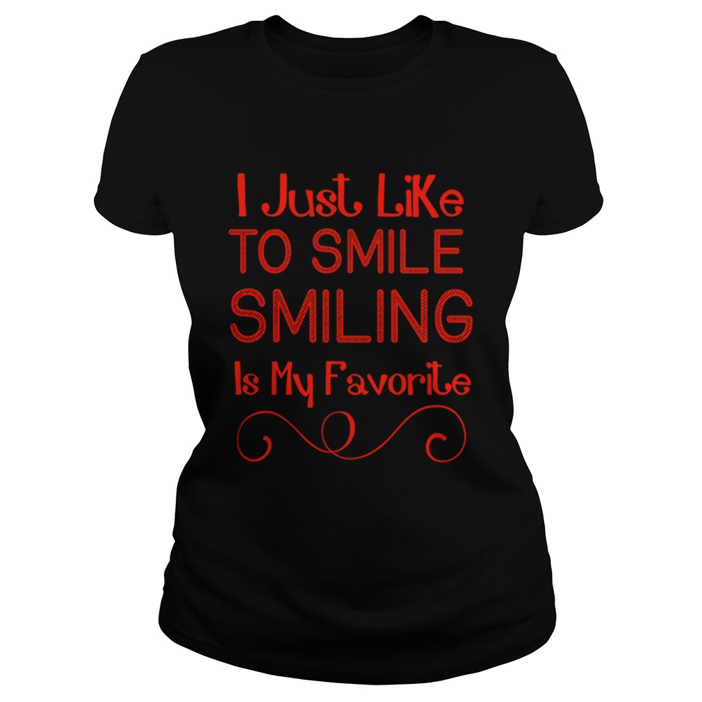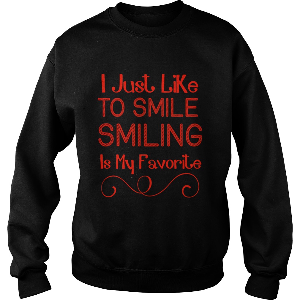 My favourite Christmas tradition ELF I Lke To Smile Smiling Is My Favorite Christmas shirt . As a kid was driving around looking at Christmas lights with my family. I love continuing this tradition with my along with some very close friends and their children. We take an annual photo in a sleigh at a local house, and every year the sleigh gets fuller as friends add babies to our wonderful family.Thus angels appear in many ways not always with an angelic appearance but sometimes in the most unique ways. Yes we can get into a discussion on the I would be happy to. This morning I again see my profile picture and smile. The happy smile you see was one of fun and excitement. That’s what Santa Claus does for me.