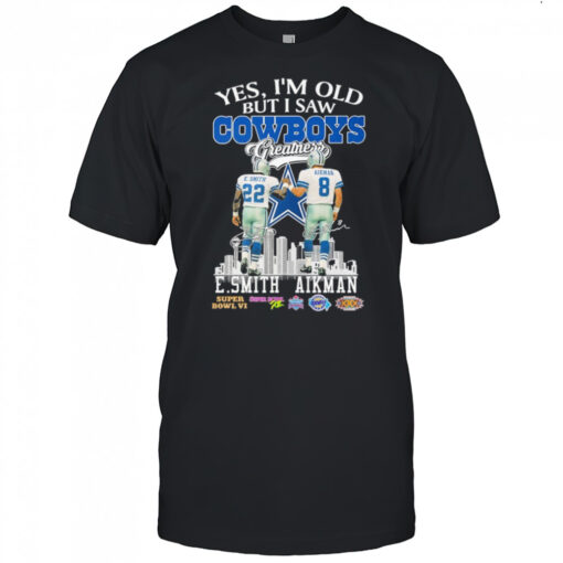 Emmitt Smith And Troy Aikman Yes I’m Old But I Saw Dallas Cowboys Greatness Signatures T-shirt, hoodie, sweater, longsleeve and ladies t-shirt