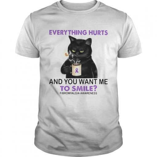 Everything Hurts And You Want Me To Smile Fibromyalgia Awareness Cat shirt, hoodie, sweater, longsleeve and ladies t-shirt