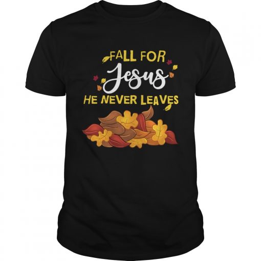 Fall For Jesus He Never Leaves shirt, hoodie, sweater, longsleeve and ladies t-shirt