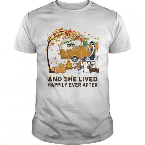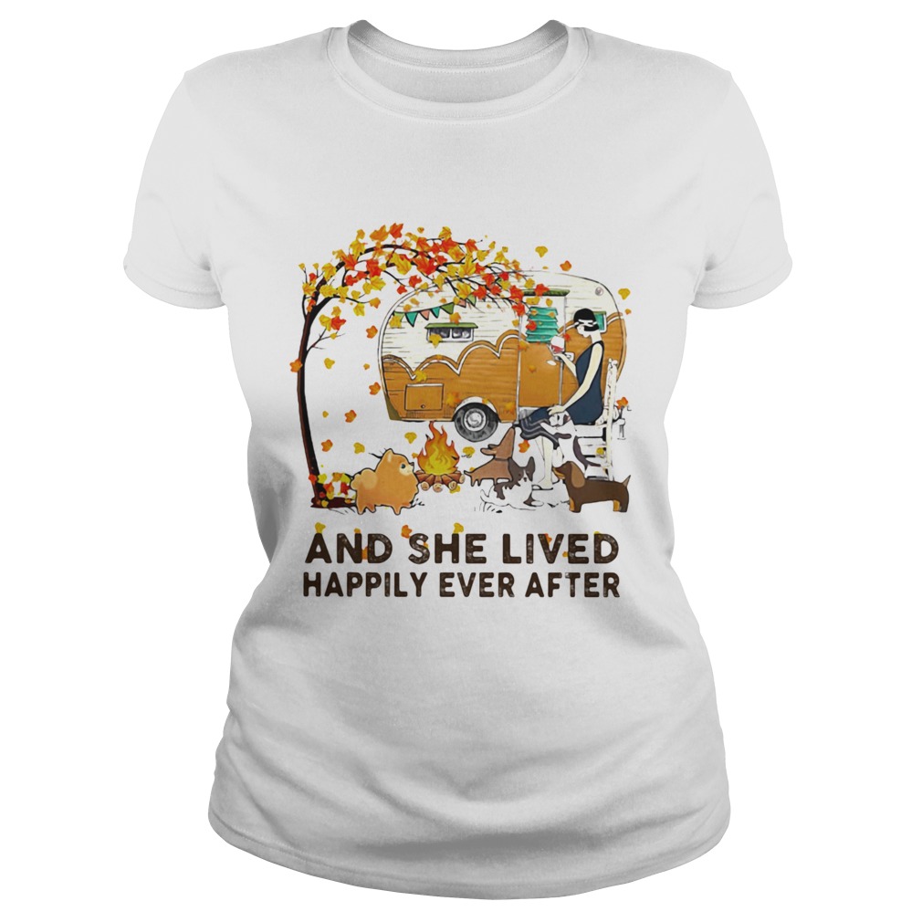 Fall Girl camping with dogs and she lived happily ever after shirt, hoodie, sweater, longsleeve and ladies t-shirt