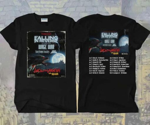 Get ready to rock the coolest look of the season with the Falling In Reverse Tour 2022 T-Shirt Live From The Unknown The Tour 2022. This exclusive tee is not just a piece of clothing; it’s a statement of your love for music and style. The design embodies the electrifying energy of a live concert, capturing the essence of the band’s iconic tour. Bold graphics and vibrant colors come together to create a visual masterpiece that will make you stand out in any crowd. Whether you’re a die-hard fan of Falling In Reverse or simply appreciate unique and edgy fashion, this t-shirt is a must-have in your wardrobe.