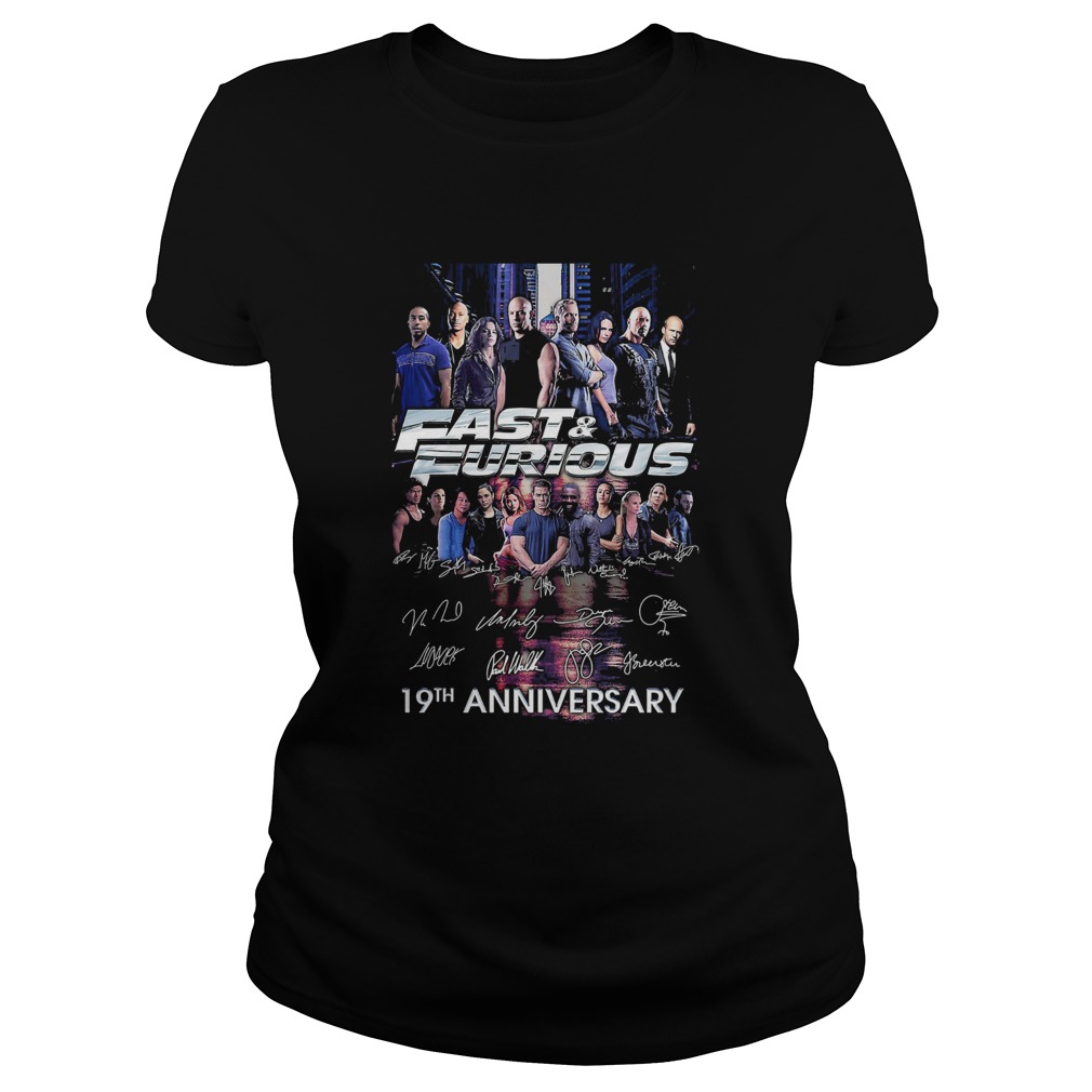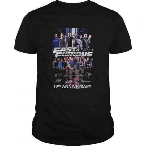 Fast and furious 19th anniversary characters signatures shirt, hoodie, sweater, longsleeve and ladies t-shirt