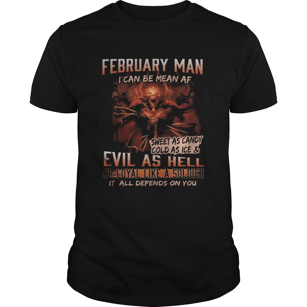 February man I can be mean Af sweet as candy cold as ice and evil as hell shirt, hoodie, sweater, longsleeve and ladies t-shirt
