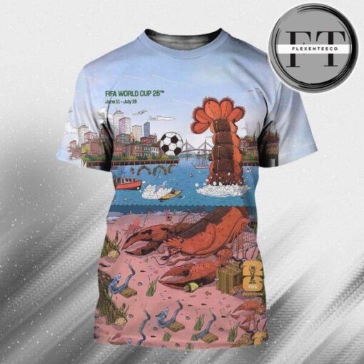 Get ready to embrace the electrifying spirit of the FIFA World Cup 26tm In Boston Official Host City Poster Art By John Rego Start On June 11 – July 19 2026 All Over Sprint Shirt! Created by the renowned artist John Rego, this exclusive poster art captures the essence of Boston as the official host city for the iconic event. Immerse yourself in the vibrant colors and dynamic design that pay homage to the rich history and passion for football in this bustling city. Every brushstroke tells a story, evoking a sense of excitement and anticipation for the upcoming tournament.