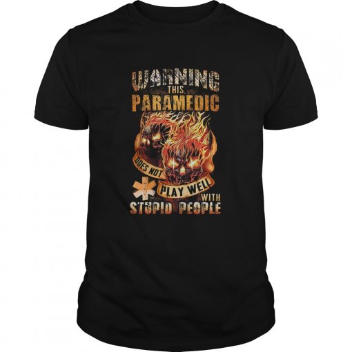 Fire skulls warning this paramedic does not play well with stupid people shirt, hoodie, sweater, longsleeve and ladies t-shirt