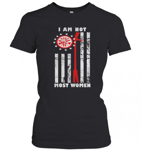 Firefighter Fireman Department Logo I Am Not Most Women American Flag T-Shirt, hoodie, sweater, longsleeve and ladies t-shirt