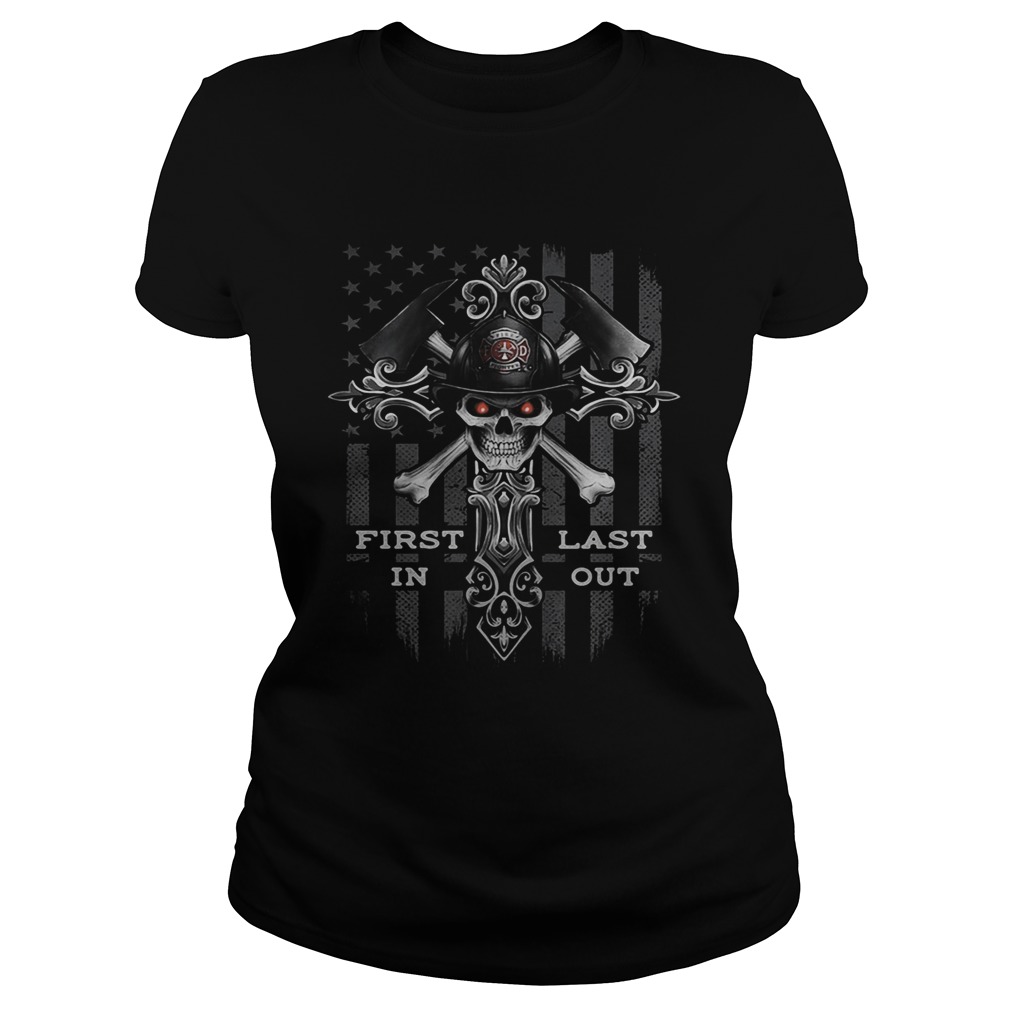 Firefighter skull first in last out shirt, hoodie, sweater, longsleeve and ladies t-shirt