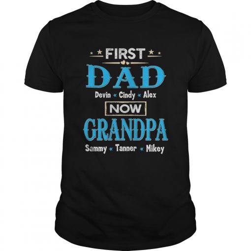 First Dad Davin Cindy Alex Now Grandpa Sammy Tanner Mikey shirt, hoodie, sweater, longsleeve and ladies t-shirt