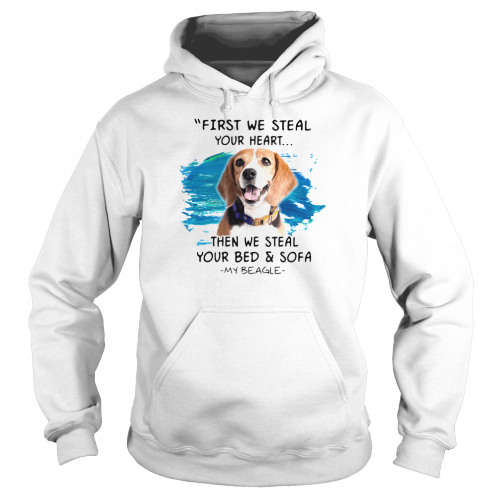 First We Steal Your Heart Then We Steal Your Bed And Sofa My Beagle shirt, hoodie, sweater, longsleeve and ladies t-shirt