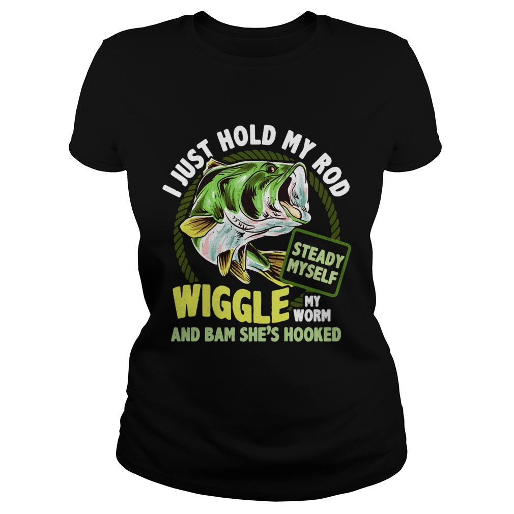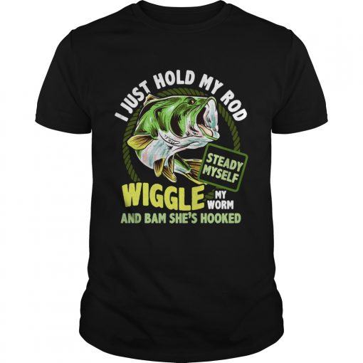 Fishing I just hold my rod steady myself wiggle my worm and bam shes hooked shirt, hoodie, sweater, longsleeve and ladies t-shirt