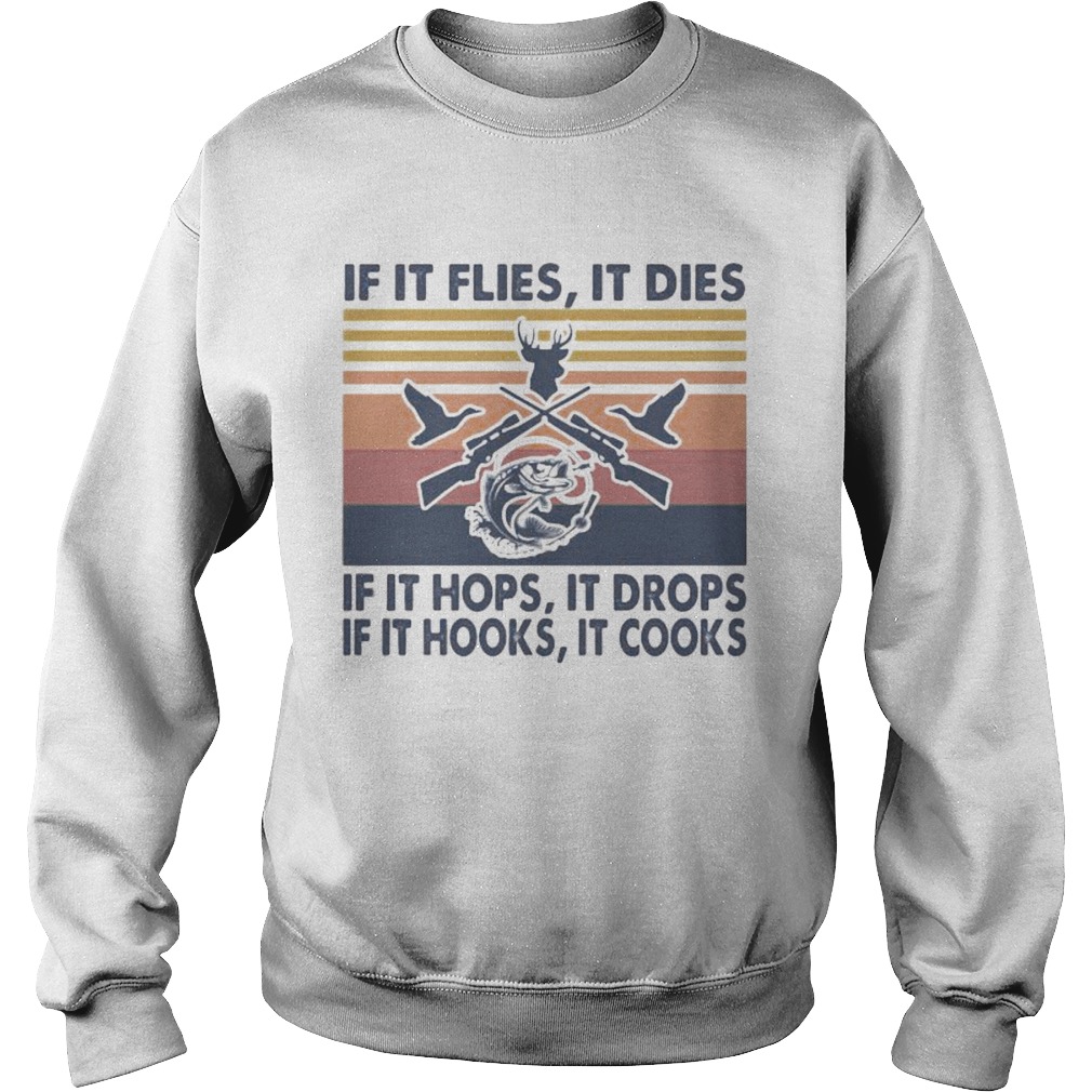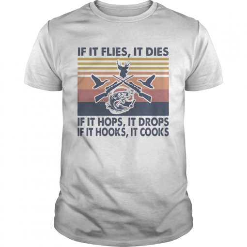Fishing if it flies it dies if it hops it drops if it hooks it cooks vintage retro shirt, hoodie, sweater, longsleeve and ladies t-shirt