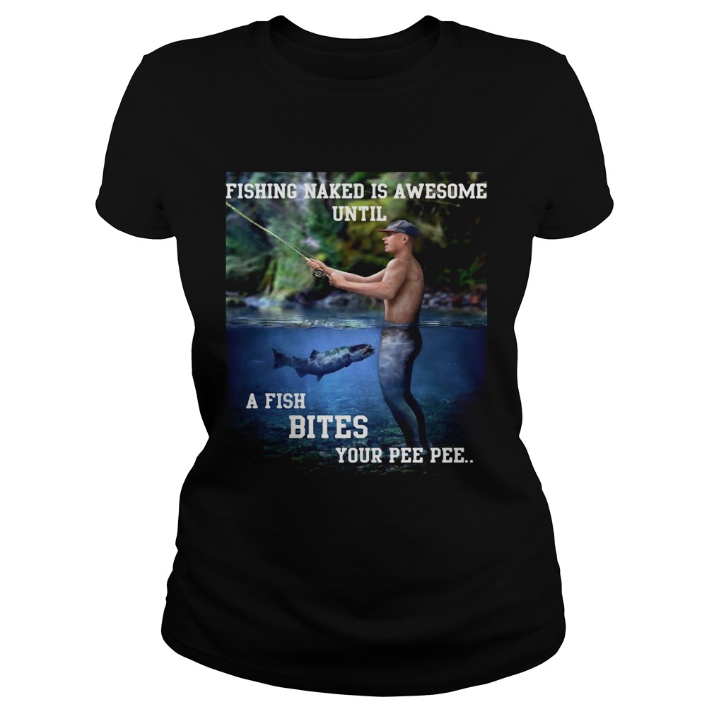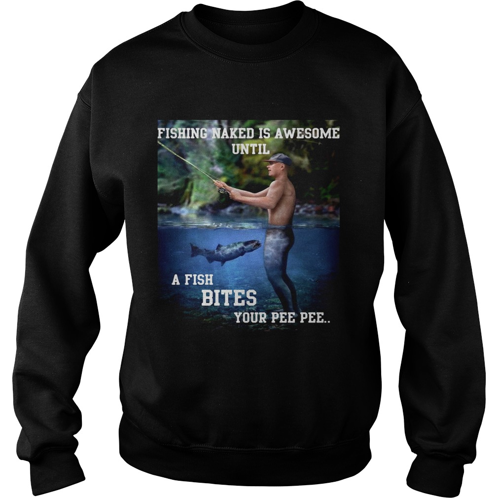 Fishing naked is awesome until a fish bites your pee pee shirt, hoodie, sweater, longsleeve and ladies t-shirt