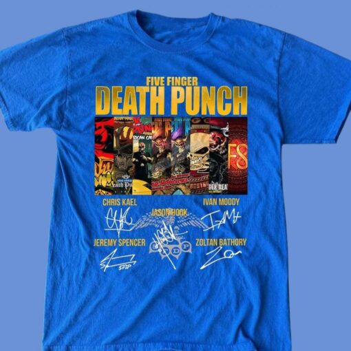 The intricate details of the Five Finger Death Punch Members Signatures Shirt will leave you in awe. The high-quality fabric ensures comfort while the bold signatures of the band members add a touch of exclusivity to your wardrobe. Imagine the feeling of wearing a piece of memorabilia that represents your passion for music. It’s not just a shirt; it’s a symbol of your dedication to the metal genre. Embrace the rebellious spirit of Five Finger Death Punch and stand out from the crowd with this unique and eye-catching shirt.