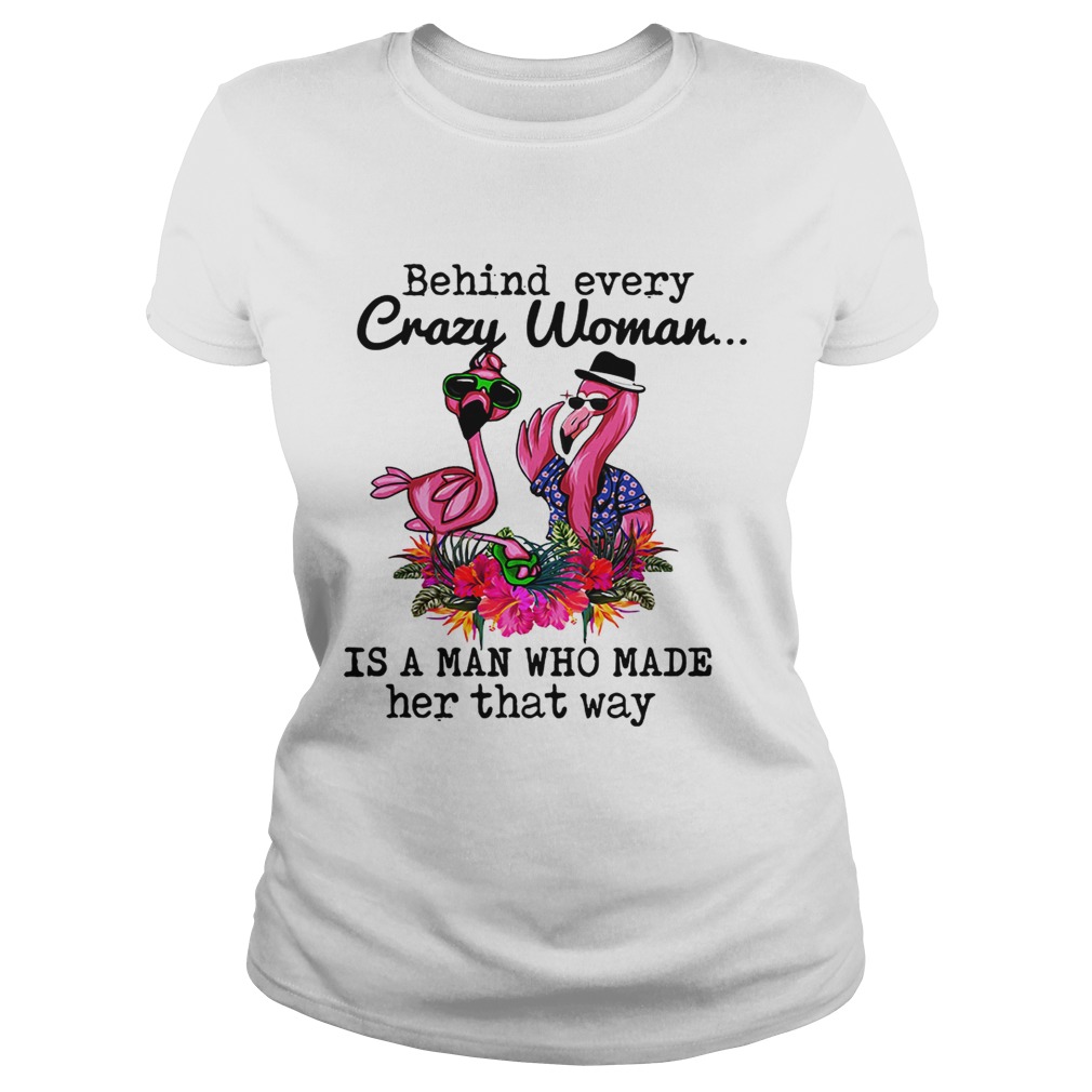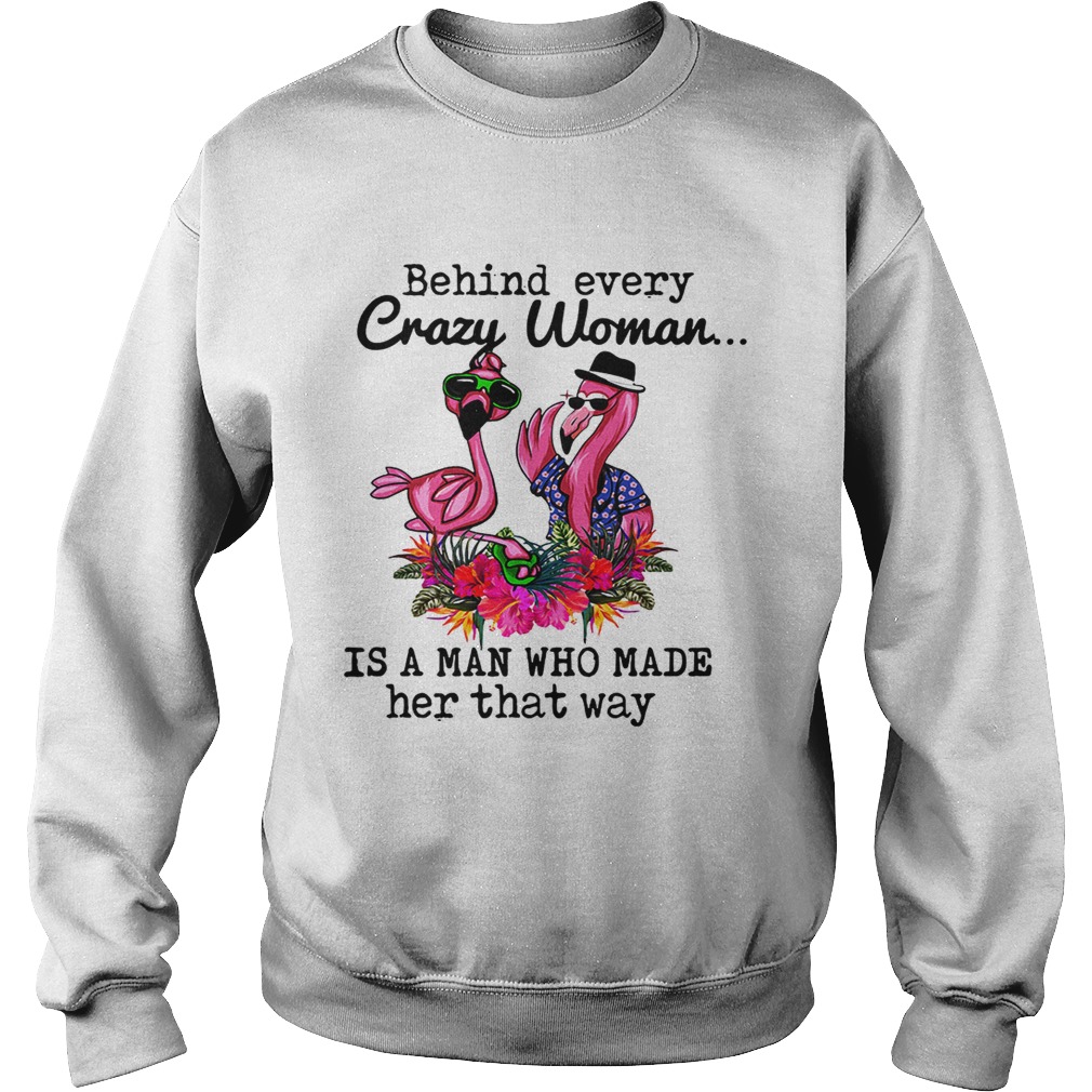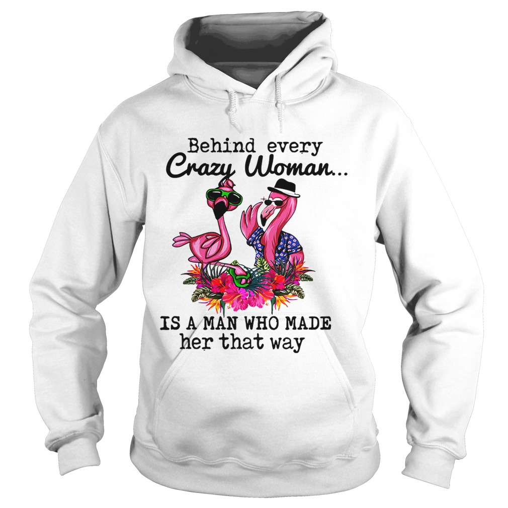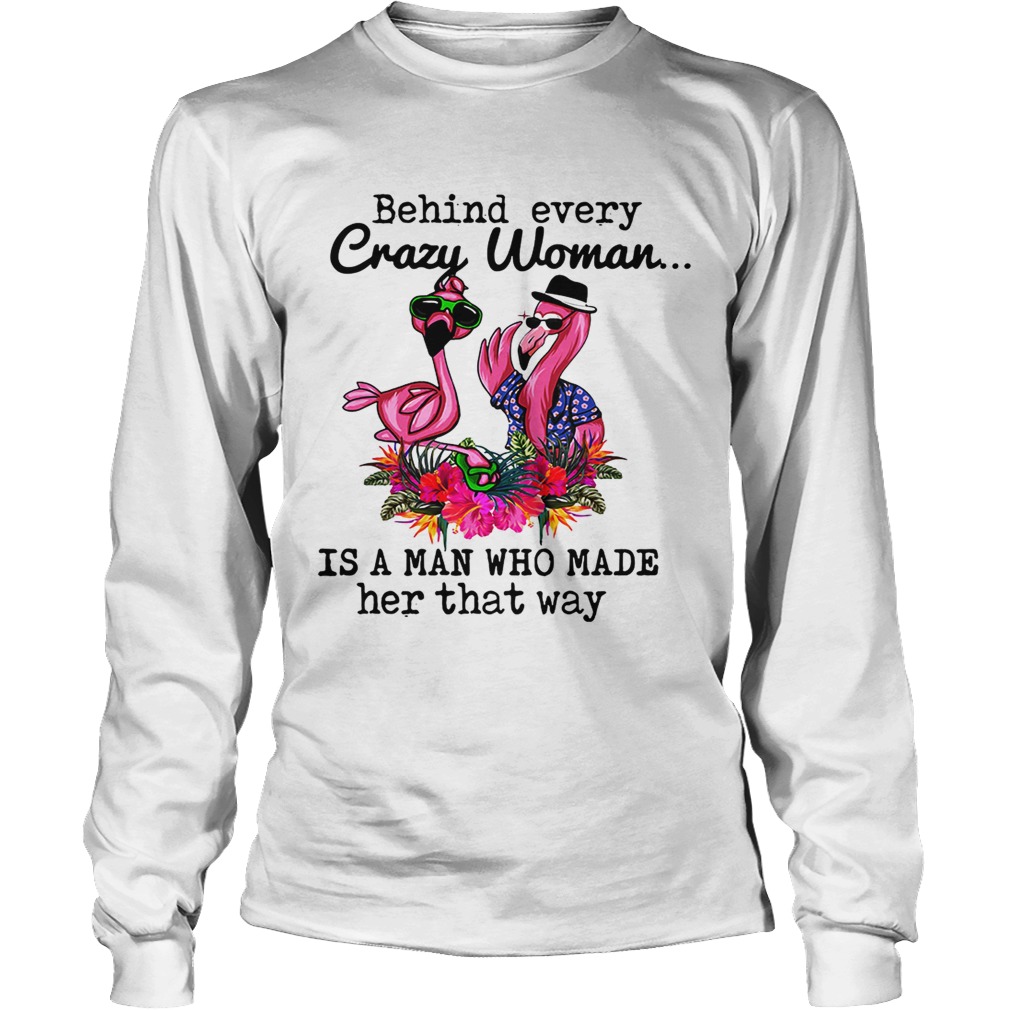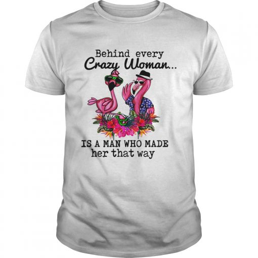 Flamingo behind every crazy woman is a man who made her that shirt, hoodie, sweater, longsleeve and ladies t-shirt