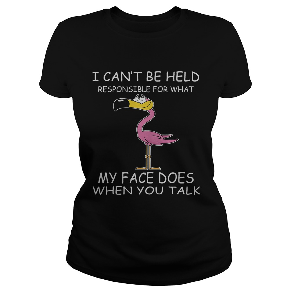 Flamingo I Can’t Be Held Responsible For What My Face Does When You Talk Shirt, Hoodie, V-neck, Sweater, Longsleeve, Tank Top, Bella Flowy and Unisex, T-shirt