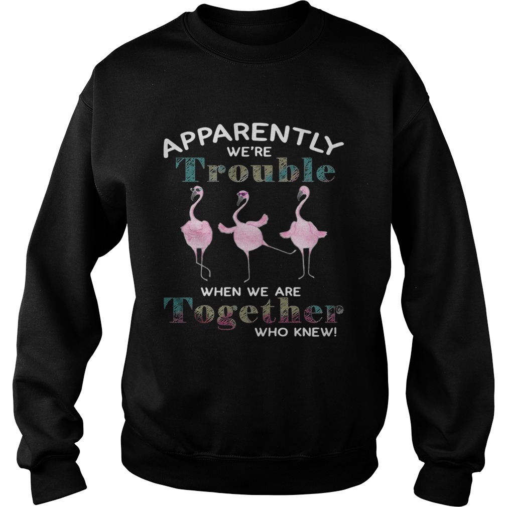 Flamingos apparently were trouble when we are together who knew shirt, hoodie, sweater and v-neck t-shirt