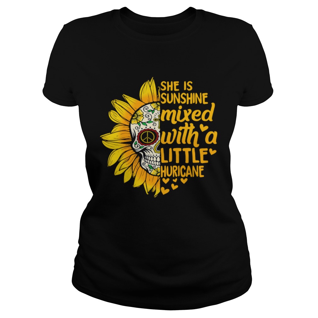 Flower Skull she is sunshine mixed with a little huricane shirt, hoodie, sweater, longsleeve and ladies t-shirt