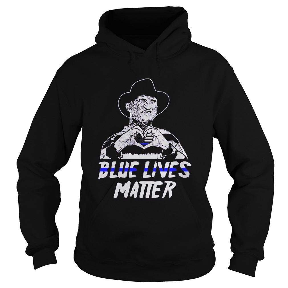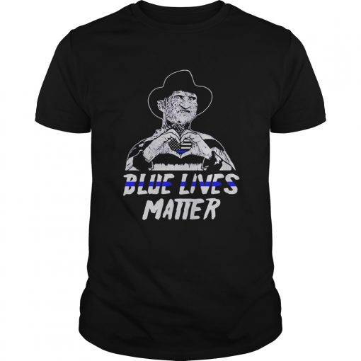 Freddy krueger blue lives matter heart american flag independence day shirt, hoodie, sweater, longsleeve and ladies t-shirt