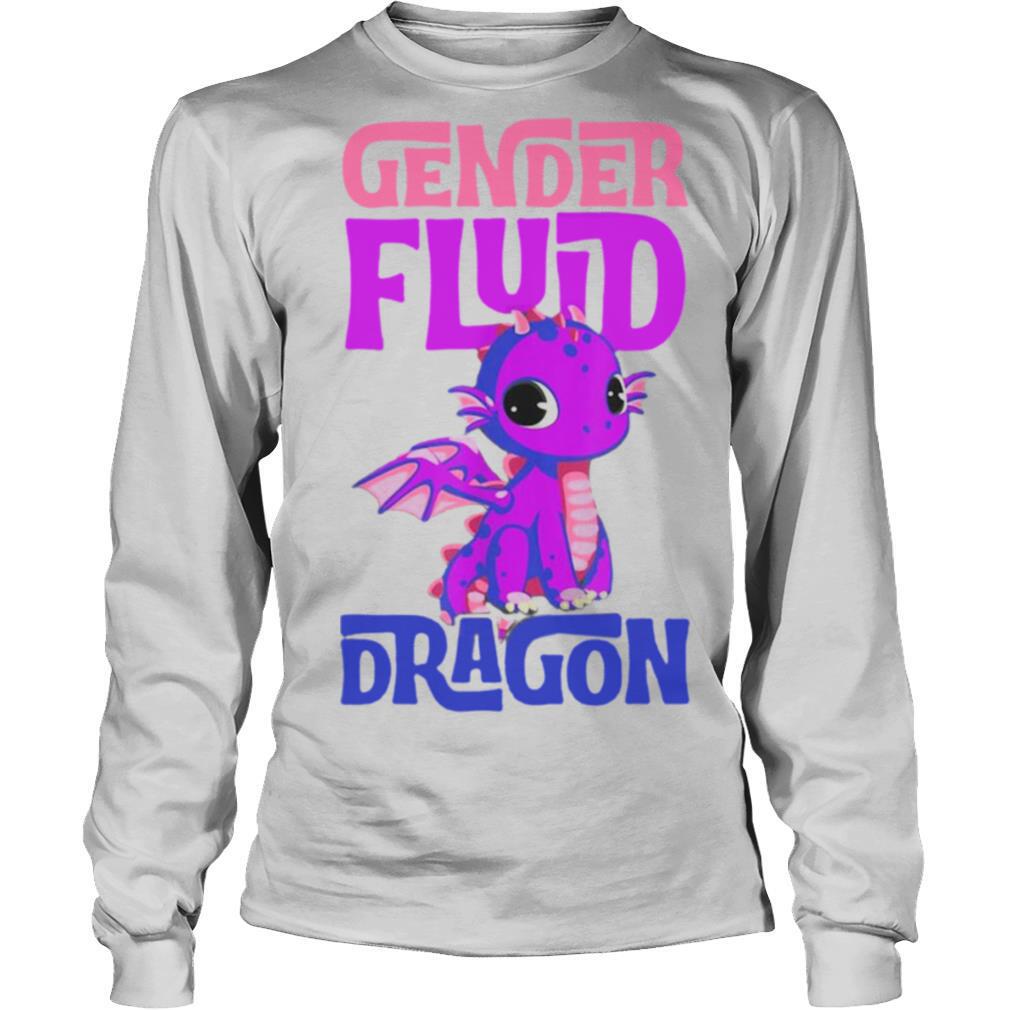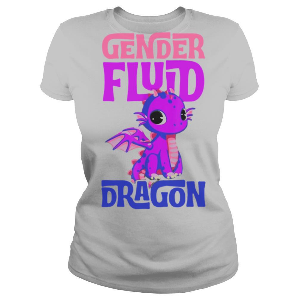 (Hoodie Tee)And then, well, that’s where we come in Genderfluid Dragon Genderqueer Genderfluid Pride Flag Gift shirt. Discharge ink removes the dye from the t-shirt. This exposes the natural colour of the cotton which is then ‘re-dyed’ using pigments that are resistant to the bleaching qualities in the discharge ink. The fibres of the shirt are recoloured so your t-shirt and print can breathe. Have a look at the photo below and you’ll see a close up of some discharge prints. As you can see, the finished product is still all t-shirt and no heavy deposit of ink, which is what you would get with a traditional plastisol print. There are, however, certain limitations to its powers: It won’t work on royal blue, kelly green and purple material. It gives interesting/great (depending on your taste) results on polycotton and triblend t-shirts, we’ll explain this further in the triblend discharge blog post, coming soon!If it were us, we’d go for a discharge print all the time, but it’s a matter of personal preference and it depends on your brief. Hopefully this post will help you out. Having said that, it’s hard to convey just how soft something is in a photo so if you want to drop by, you’re more than welcome. Be warned, though, we can drone on about this ink for hours! We are proud to say that we’re pioneers of discharge ink in Ireland and are the only commercial printer offering these super soft prints.