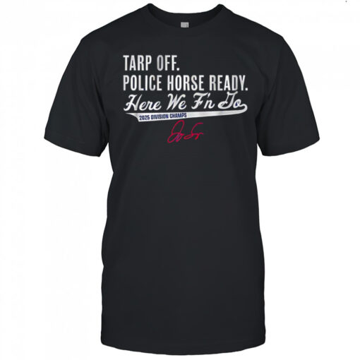 Step into the world of baseball fashion with the electrifying George Springer Toronto Blue Jays baseball Tarp off police horse ready 2025 signature shirt. This exclusive piece is not just an ordinary shirt; it’s a statement. Imagine wearing the same signature shirt as the dynamic George Springer himself, embodying the essence of team spirit and dedication. Crafted with premium quality materials, this shirt is a perfect blend of comfort and style. The intricate design captures the essence of the Toronto Blue Jays’ energy, making it a must-have for any die-hard fan.