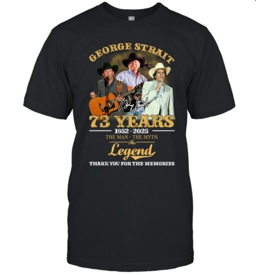Embrace the legacy of George Strait and show your admiration with the George Strait 73 Years 1952–2025 The Man The Myth The Legend T-Shirt. This shirt is more than just a garment; it’s a statement of love and respect for the unparalleled talent and influence of George Strait. With its high-quality fabric and attention to detail in the design, this t-shirt is not just about style—it’s about embodying the spirit of a true country music legend. Stand out from the crowd, honor the timeless music of George Strait, and make a bold statement with this iconic t-shirt. Get your hands on the George Strait tribute tee today and let the world know that the legend lives on!