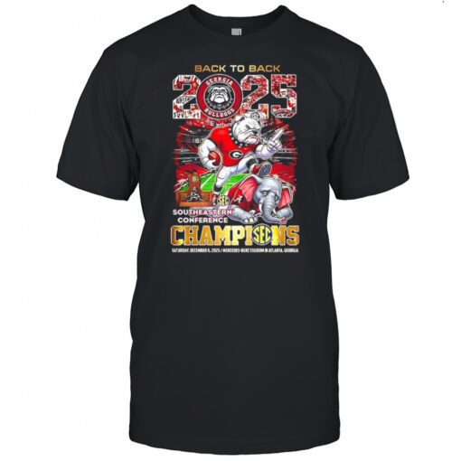 Elevate your fan gear collection and relive the glorious moments of the SEC Championship with the Georgia Bulldogs beat Alabama Crimson Tide SEC Champions 2025 Back2Back Victory mascot shirt. Donning this shirt isn’t just about wearing apparel; it’s about embodying the Bulldog spirit and celebrating their remarkable achievement. Join the Bulldog nation in commemorating this historic win with every wear. Don’t miss your chance to own a piece of history and showcase your allegiance with pride. Whether you’re a die-hard fan or looking for a standout addition to your sports wardrobe, this shirt is a must-have. Get yours now and let the world know you stand with the Bulldogs through every victory!
