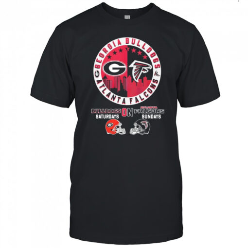 Georgia Bulldogs on Saturdays and Atlanta Falcons on Sundays helmet logo mashup shirt, hoodie, sweater, longsleeve and ladies t-shirt