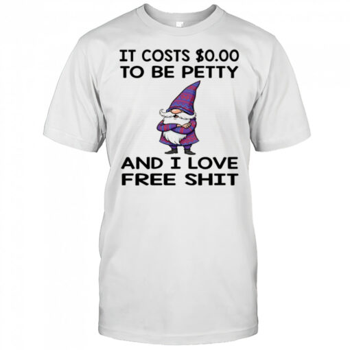 Gnome it costs to be petty and I love free shit shirt, hoodie, sweater, longsleeve and ladies t-shirt