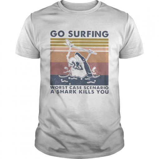 Go surfing worst case scenario a shark kills you vintage retro shirt, hoodie, sweater, longsleeve and ladies t-shirt