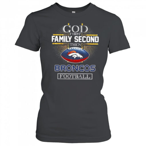 God first family second then Denver Broncos football Cross Christian shirt, hoodie, sweater, longsleeve and ladies t-shirt