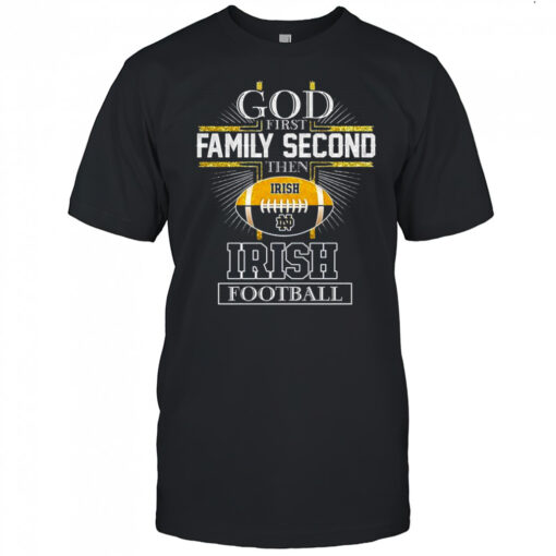 God first family second then Notre Dame Fighting Irish football 2025 shirt, hoodie, sweater, longsleeve and ladies t-shirt