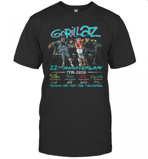 Gorillaz 22Nd Anniversary 1998 2020 Thank You For The Memories Signatures T-Shirt, hoodie, sweater, longsleeve and ladies t-shirt