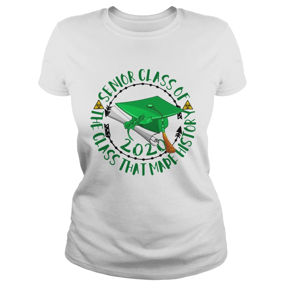 Graduation Senior Class Of 2020 The Class That Made History Green Biohazard Symbol shirt, hoodie, sweater, longsleeve and ladies t-shirt