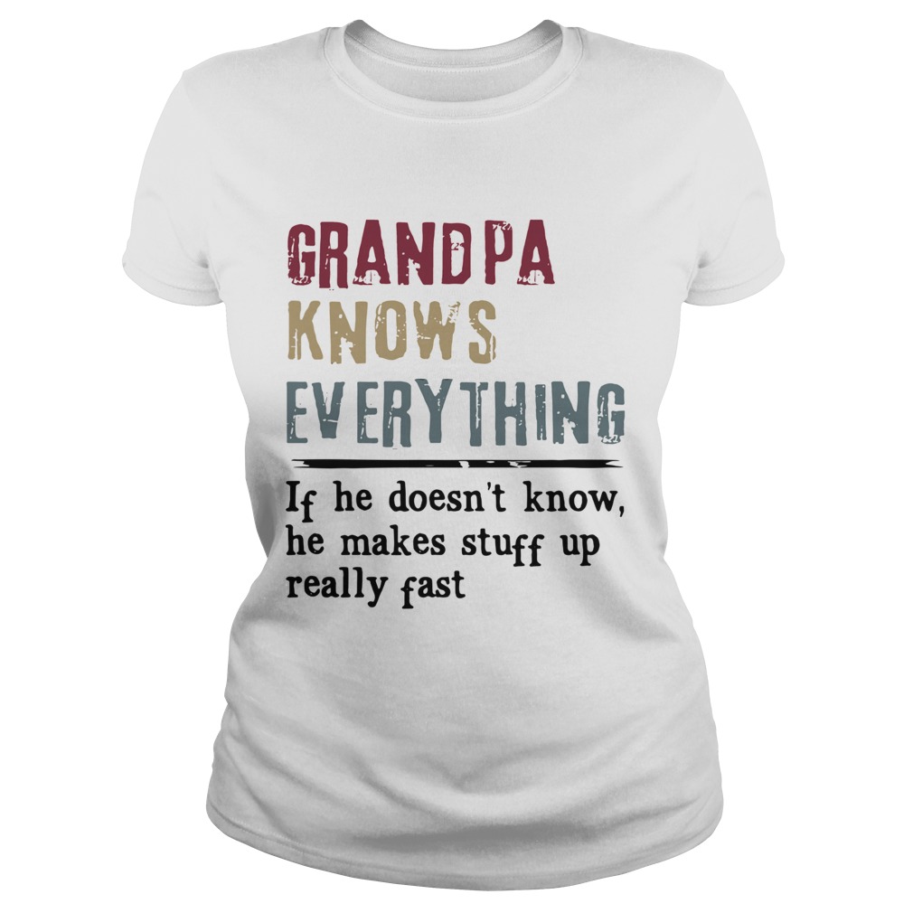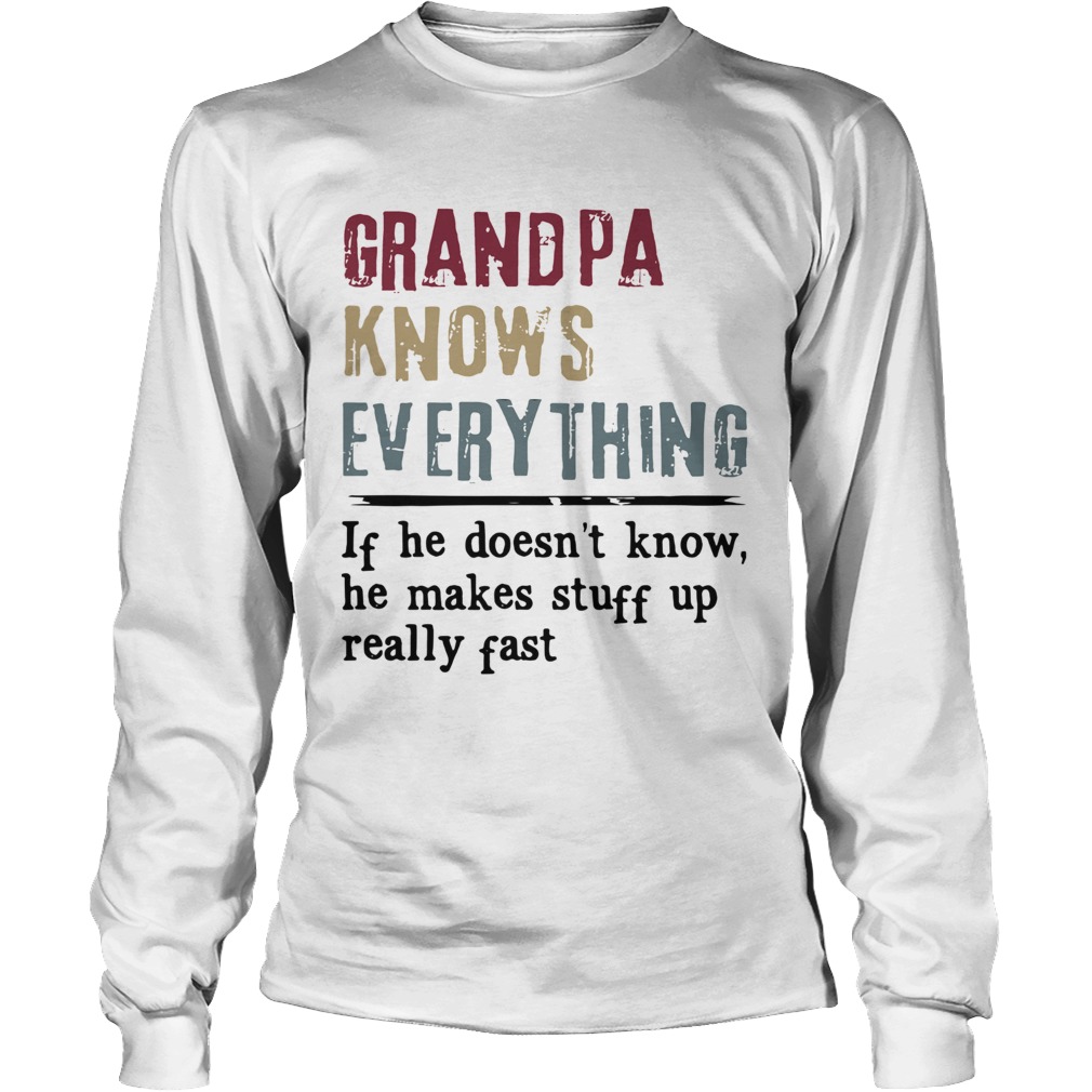 Grandpa Knows Everything If He Doesnt Know He Makes Stuff Up Really Fast shirt, hoodie, sweater, longsleeve and ladies t-shirt