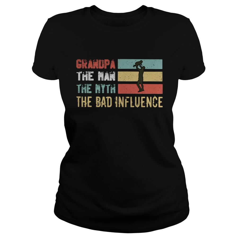 Grandpa the man the myth the bad influence happy fathers day vintage shirt, hoodie, sweater, longsleeve and ladies t-shirt