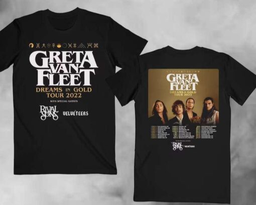 Immerse yourself in the world of rock music and make a bold statement with the Greta Van Fleet Dreams In Gold Tour Unisex T-Shirt Merch. This limited edition piece is not just a t-shirt; it’s a symbol of passion, rebellion, and the timeless allure of rock ‘n’ roll. Stand out from the crowd and let your inner rock star shine through as you don this unique garment. Don’t miss your chance to own a piece of music history and experience the thrill of the Greta Van Fleet journey. Order your shirt now and let the world know that you’re a true fan who dares to dream in gold. Rock on!
