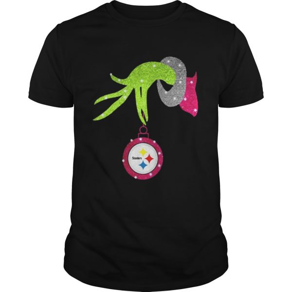 Grinch hand holding Pittsburgh Steelers ornament shirt