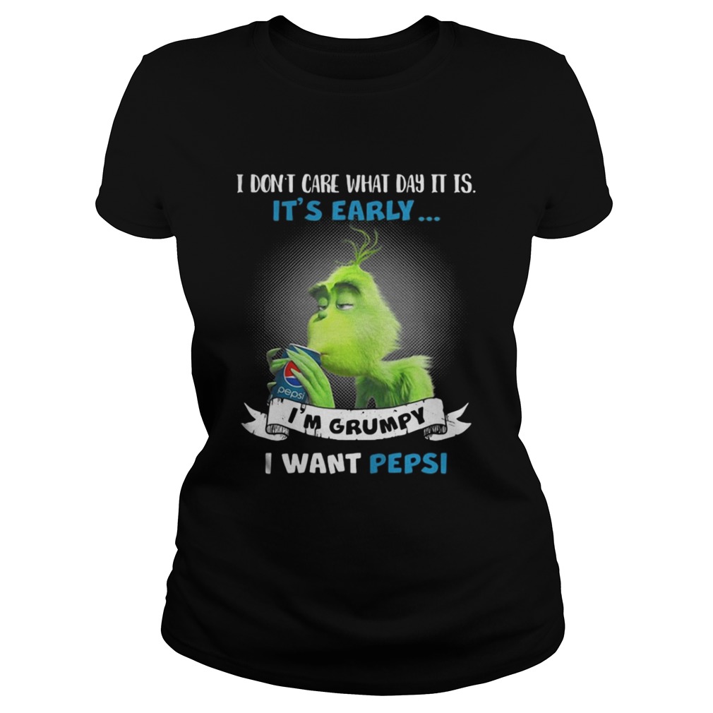 Grinch I don’t care what day it is I’m Grumpy I want Pepsi shirt